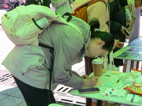 活动现场设置知识问答、关爱便利贴、毒品识别等三大互动环节,知识问答环节采用线上扫码答题的形式,题目涵盖艾滋病的传播途径、预防措施、毒品的种类与危害、禁毒法律法规等核心内容。关爱便利贴环节,同学们拿起笔在便利贴上写下对艾滋病患者的鼓励与祝福、对禁毒防艾事业的支持以及对青春健康的美好期许。毒品识别环节,工作人员通过图片向同学们详细展示了海洛因、冰毒、摇头丸等传统毒品,以及伪装成奶茶、巧克力、跳跳糖等零食的新型毒品的外观特征、成分构成与严重危害,帮助同学们筑牢拒毒防毒的思想防线。