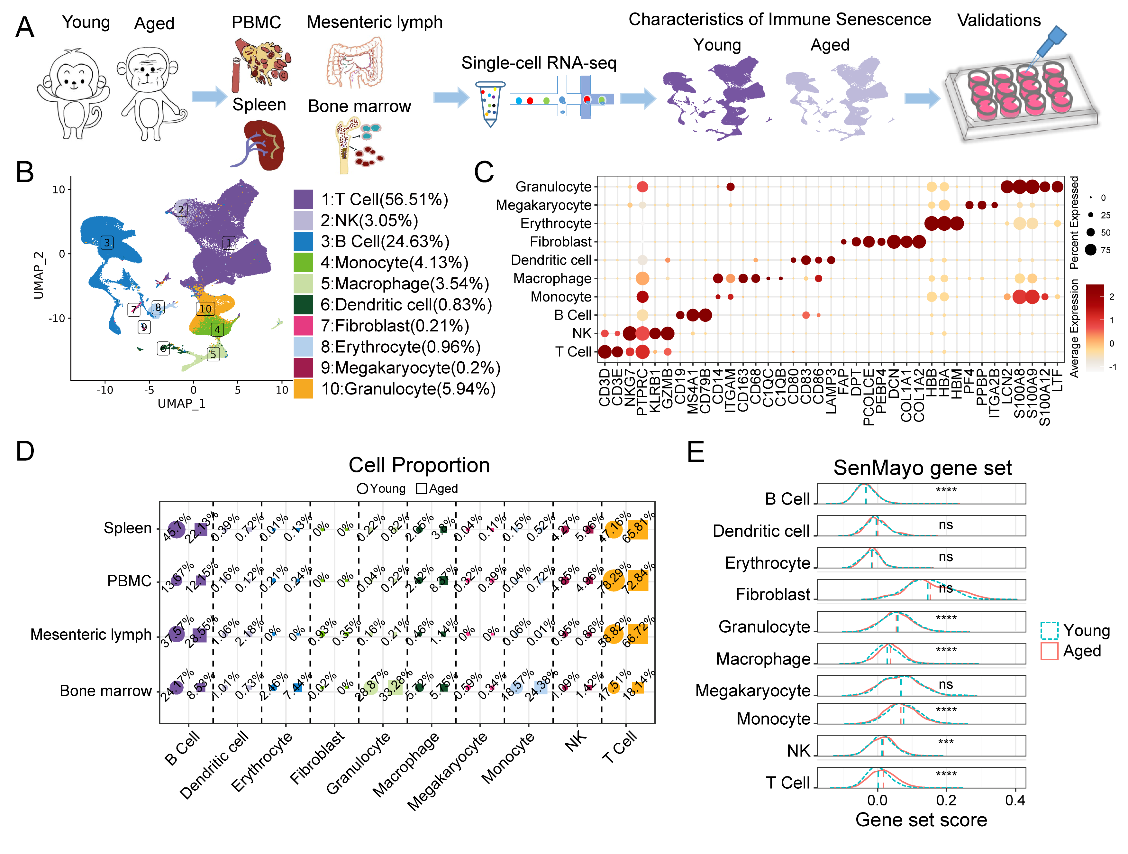 这项研究结果绘制了猕猴免疫衰老的单细胞图谱,为细胞类型特异性和组织依赖性免疫衰老特征提供了新的见解,为未来的人类衰老转化研究和生物标志物发现奠定了宝贵的基础。